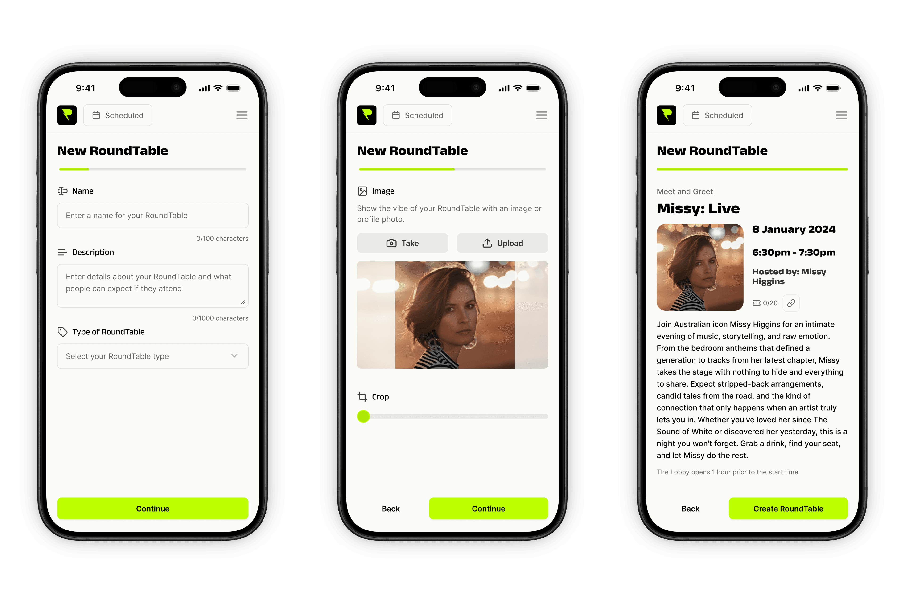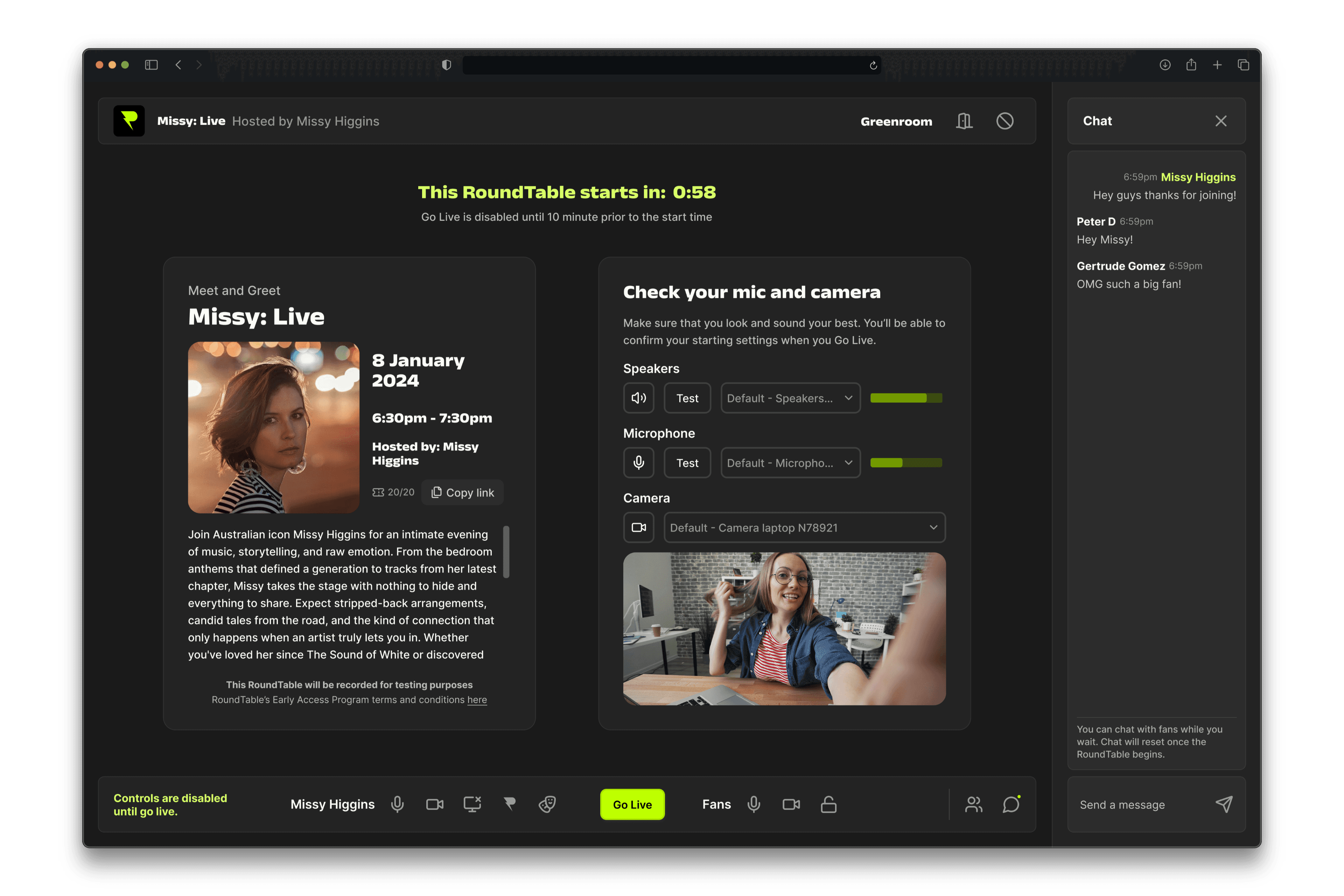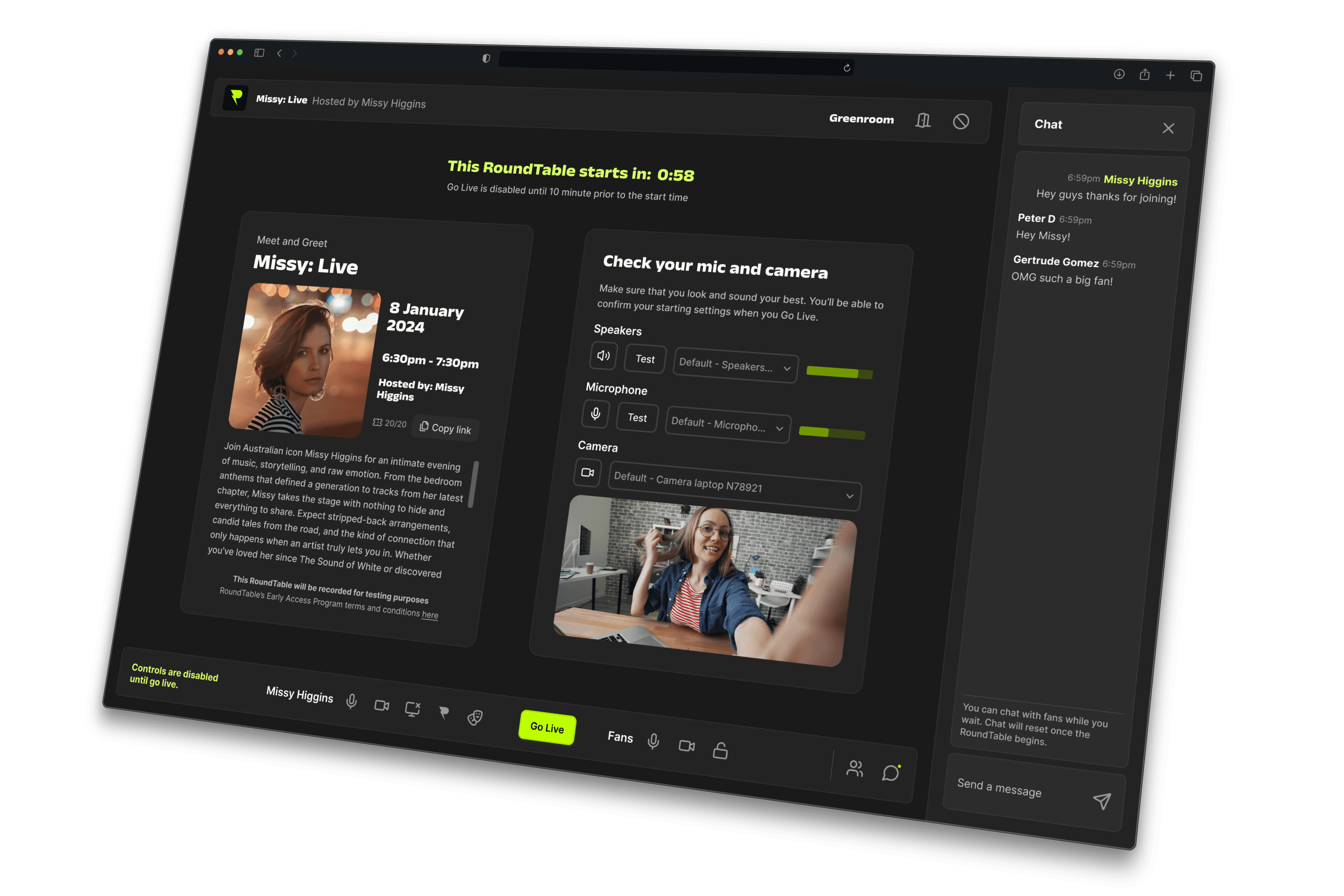 Creators entered a Greenroom, reflecting the real-world backstage experience and appealing to the exclusivity of their experience.