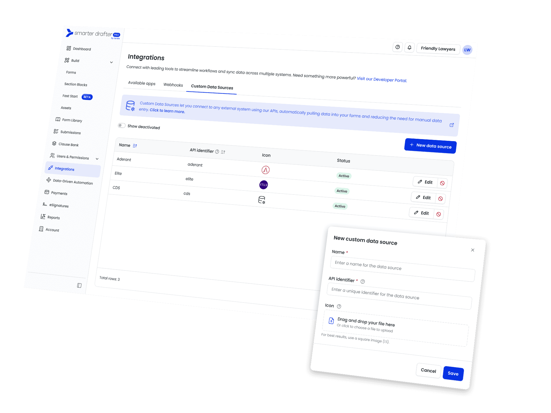 Now we had a consistent way to store and surface entities, roles, and matter details, we were able to introduce Custom Data Sources.