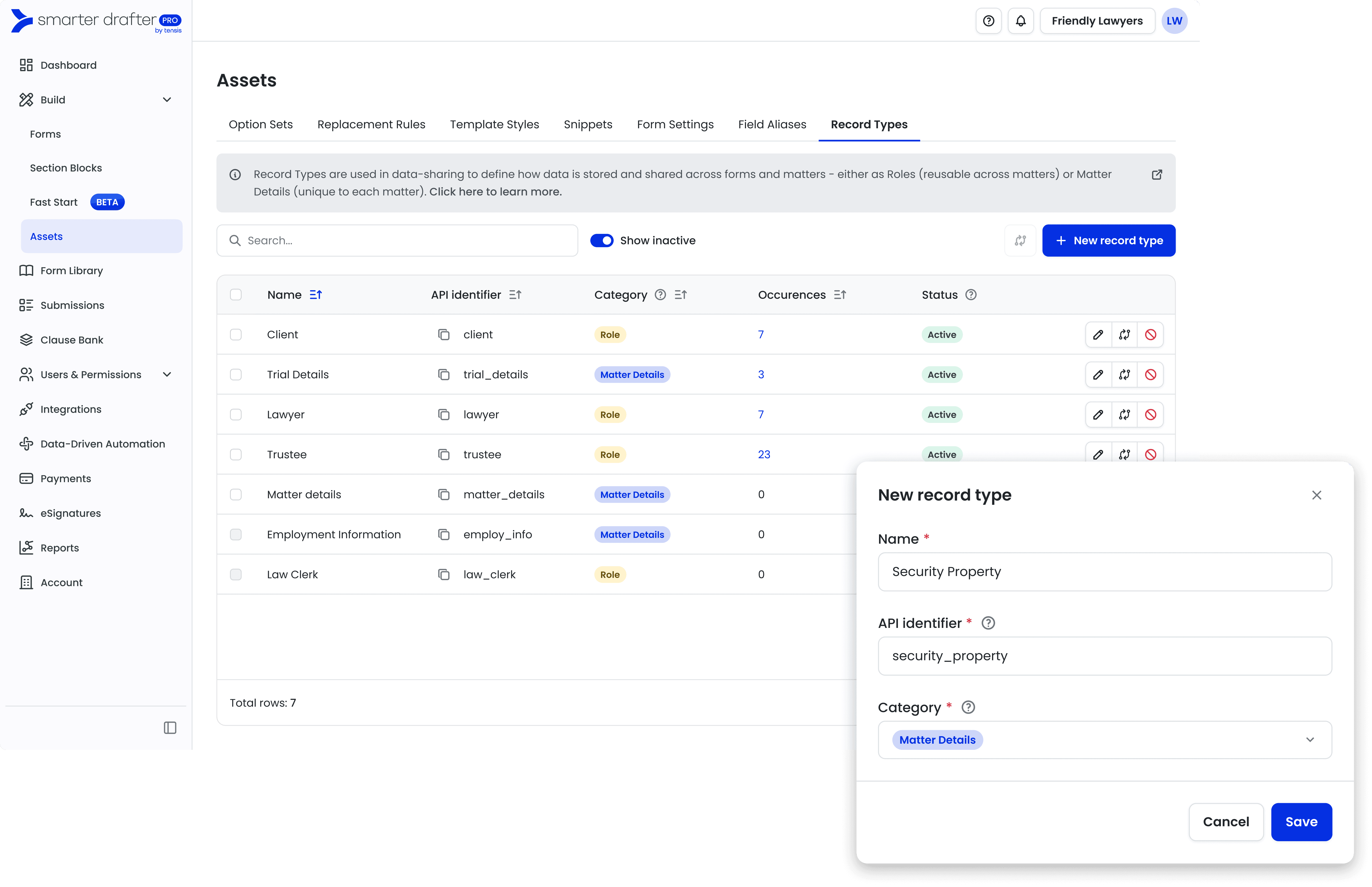 From creating and managing Record Types as an admin, to mapping Roles and Matter Details to form fields in the Builder, through to assigning and pre-filling data as a form-filler, I focused on reducing confusion, building trust and guidance and eliminating repeated data entry.