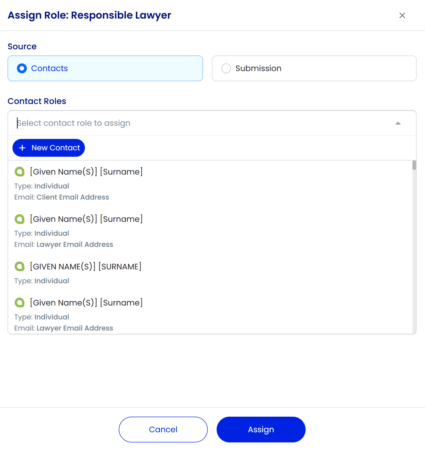 BEFORE: Unclear terminology (assigning Roles to Roles), long selection lists and sources that didn't align with real legal workflows.