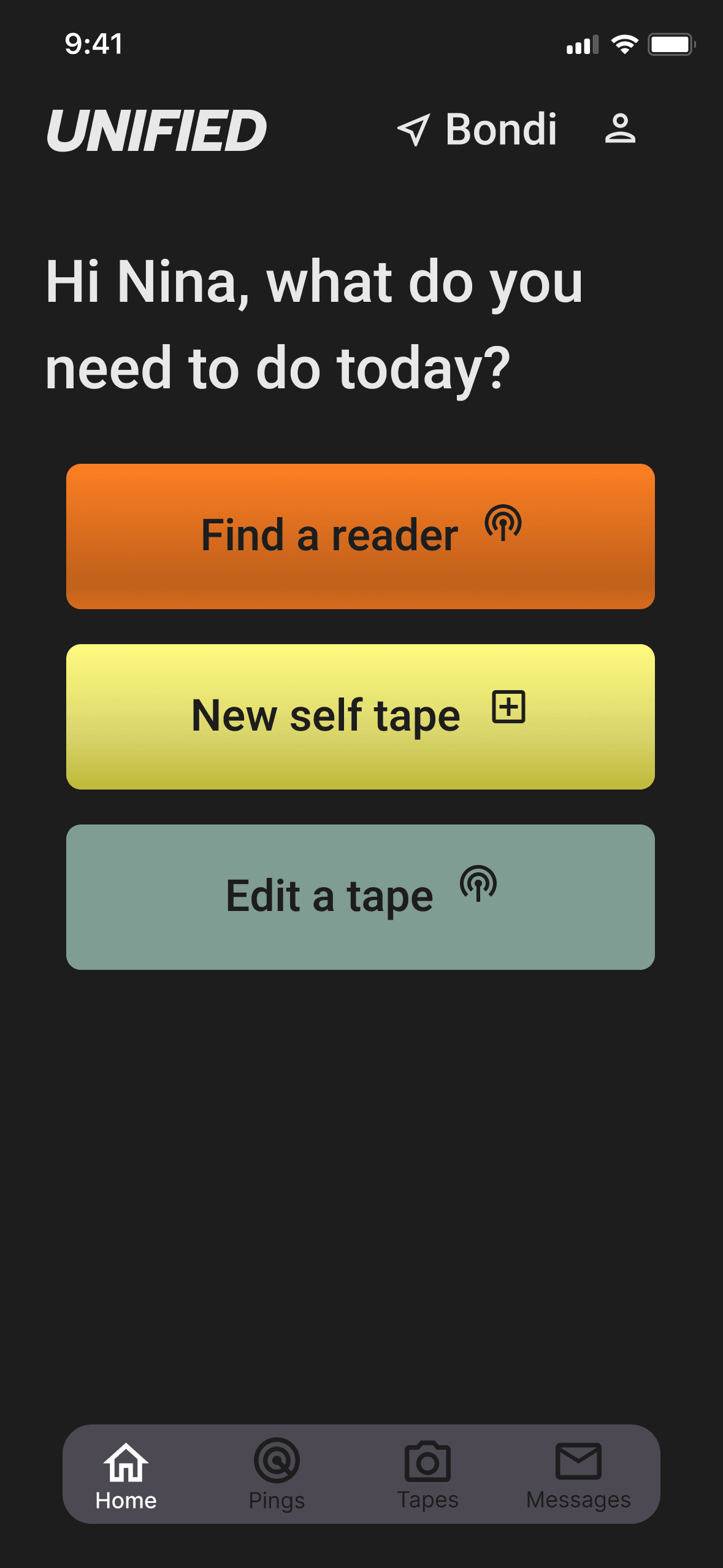 The interface had to feel sleek and modern to appeal to mostly young and tech-savvy actors, however remain accessible to actors from all walks of life. I found inspiration in boundary-pushing, rebellious brands such as Harley Davidson and Rockstar Games, as like them Unified was the new kid on the block. The final design adopted a slightly softer palette to make it more approachable and less brash.